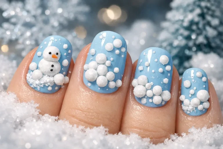 این سبک از نقاط کوچک سفید برای شبیهسازی بارش برف استفاده میکند. طراحی ظریف و دقیق باعث میشود ناخنها حس لطافت و زمستانی بودن داشته باشند و در عین حال مینیمال بمانند.
